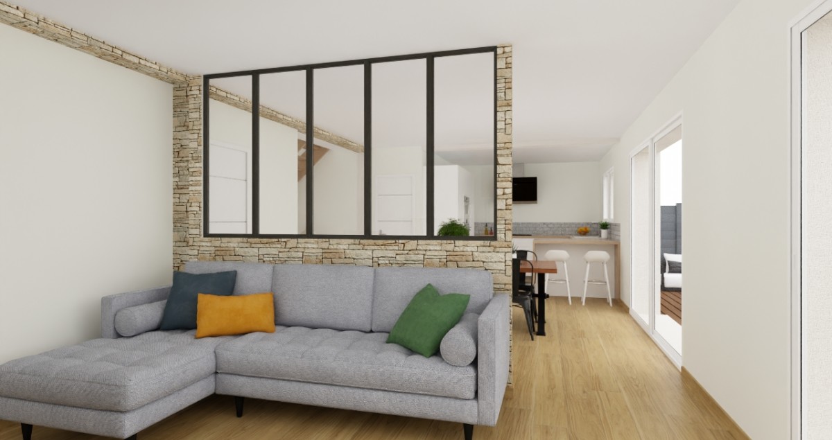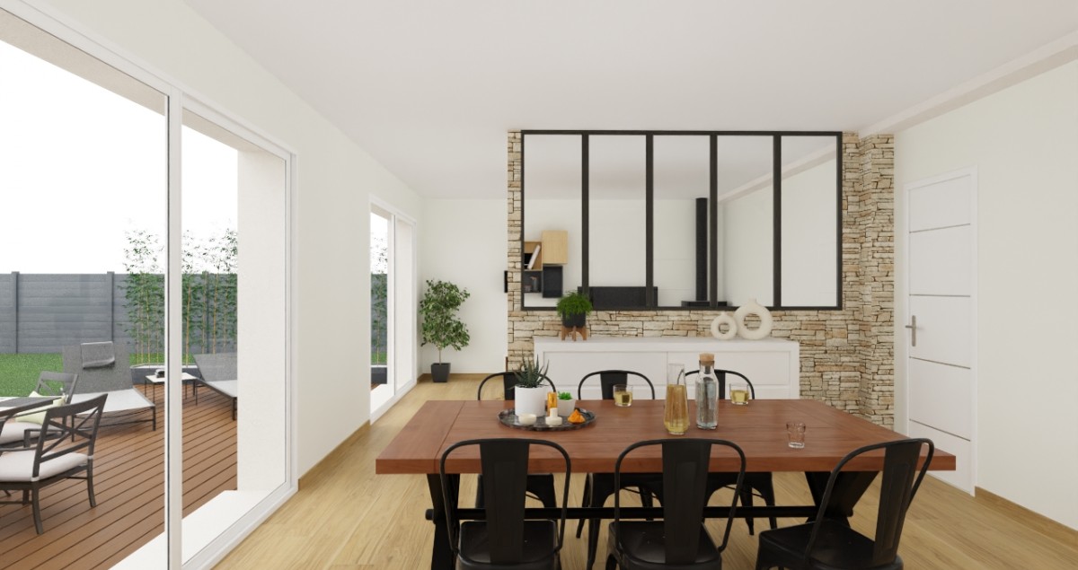 Ce projet propose 4 chambres, un séjour lumineux avec cuisine ouverte, une salle de bain familiale et des WC séparés.