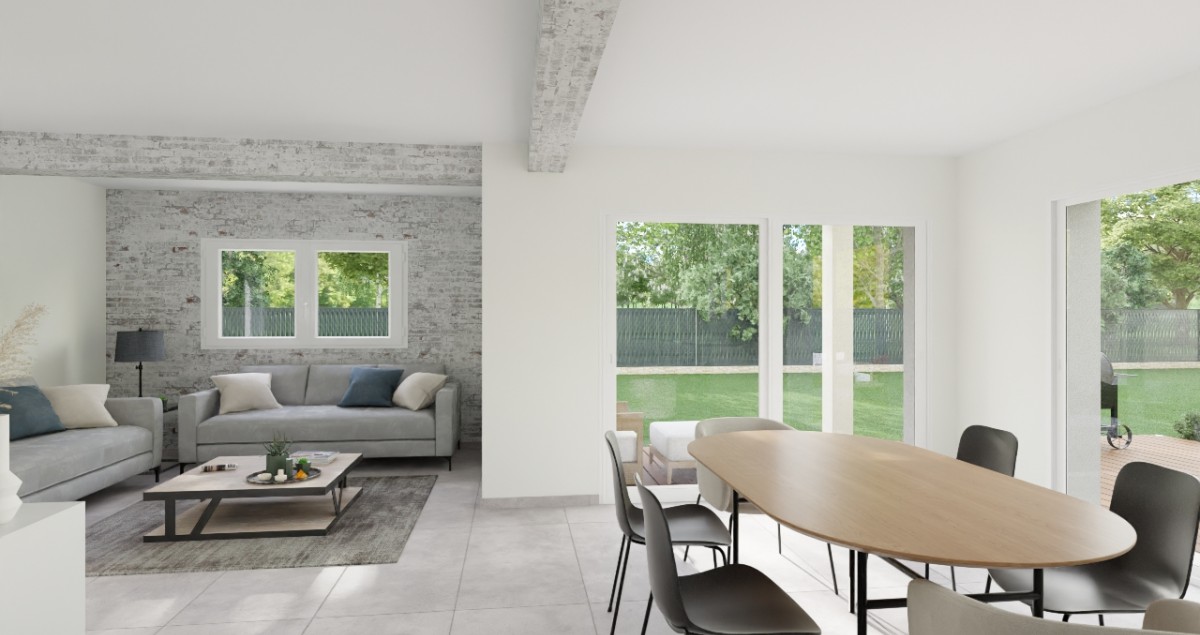 Ce projet propose 4 chambres, un séjour lumineux avec cuisine ouverte, une salle de bain familiale et des WC séparés.