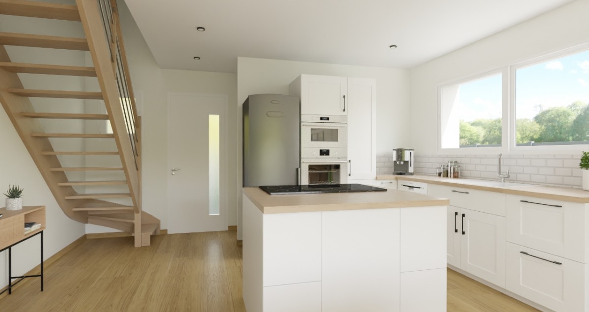Ce projet propose 3 chambres, un séjour lumineux avec cuisine ouverte, une salle de bain familiale et des WC séparés.
