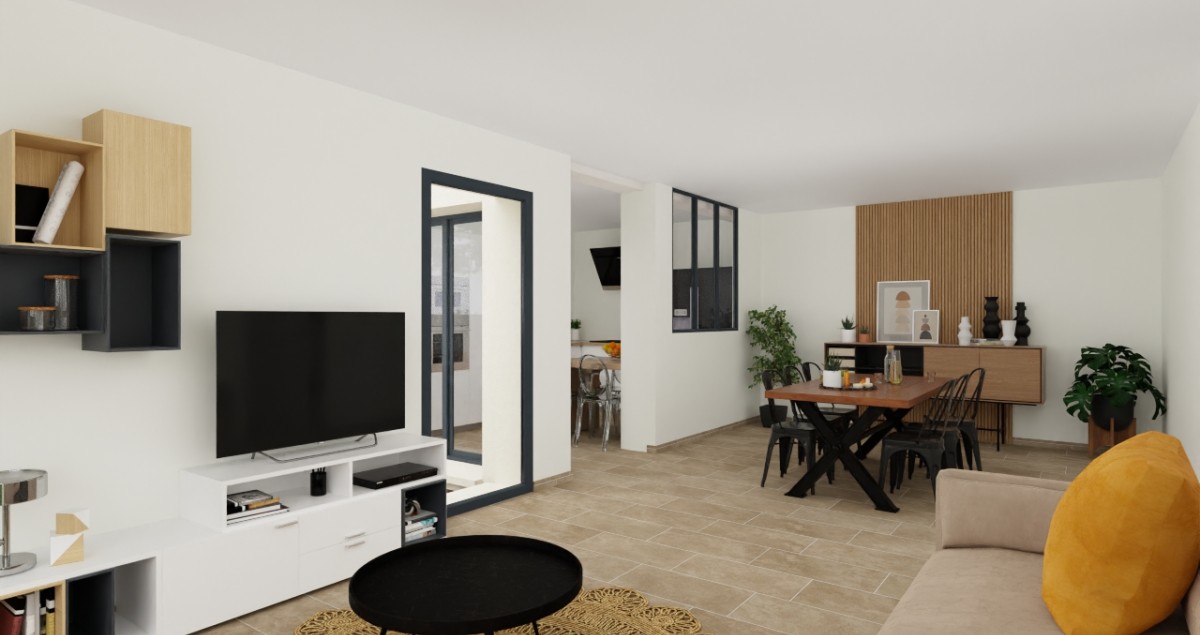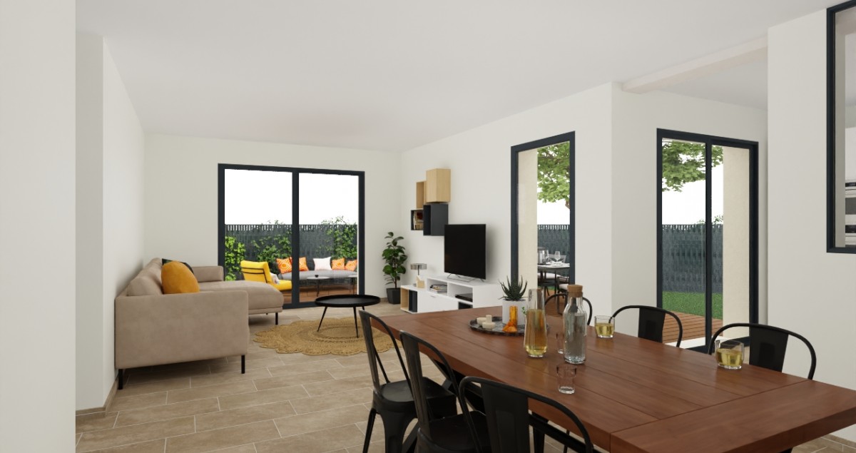 Ce projet propose 4 chambres, un séjour lumineux avec cuisine ouverte, une salle de bain familiale et des WC séparés.